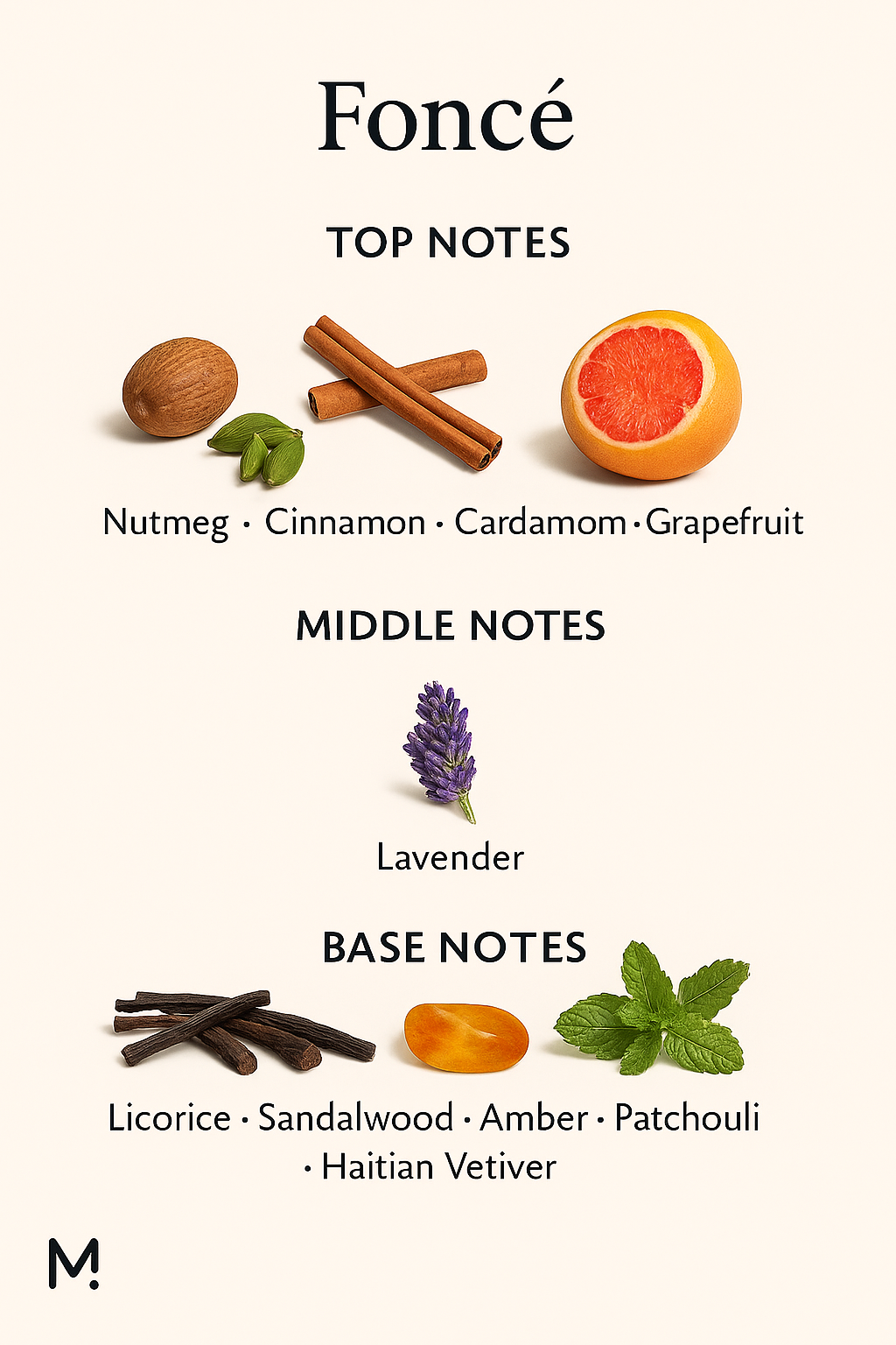 Complex scent story from top to base notes